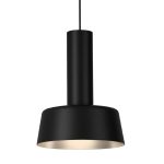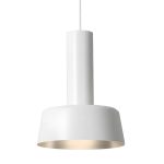 The Leo pendant is minimalist and sleek metal shade. The exterior of the entire fixture is a glossy decor, while the interior of the shade has a contrasting, warm-toned finish, which creates a soft, inviting glow. The light source is recessed within the shade, providing focused, downward illumination. The overall aesthetic is clean and contemporary, suitable for a variety of interior styles.
